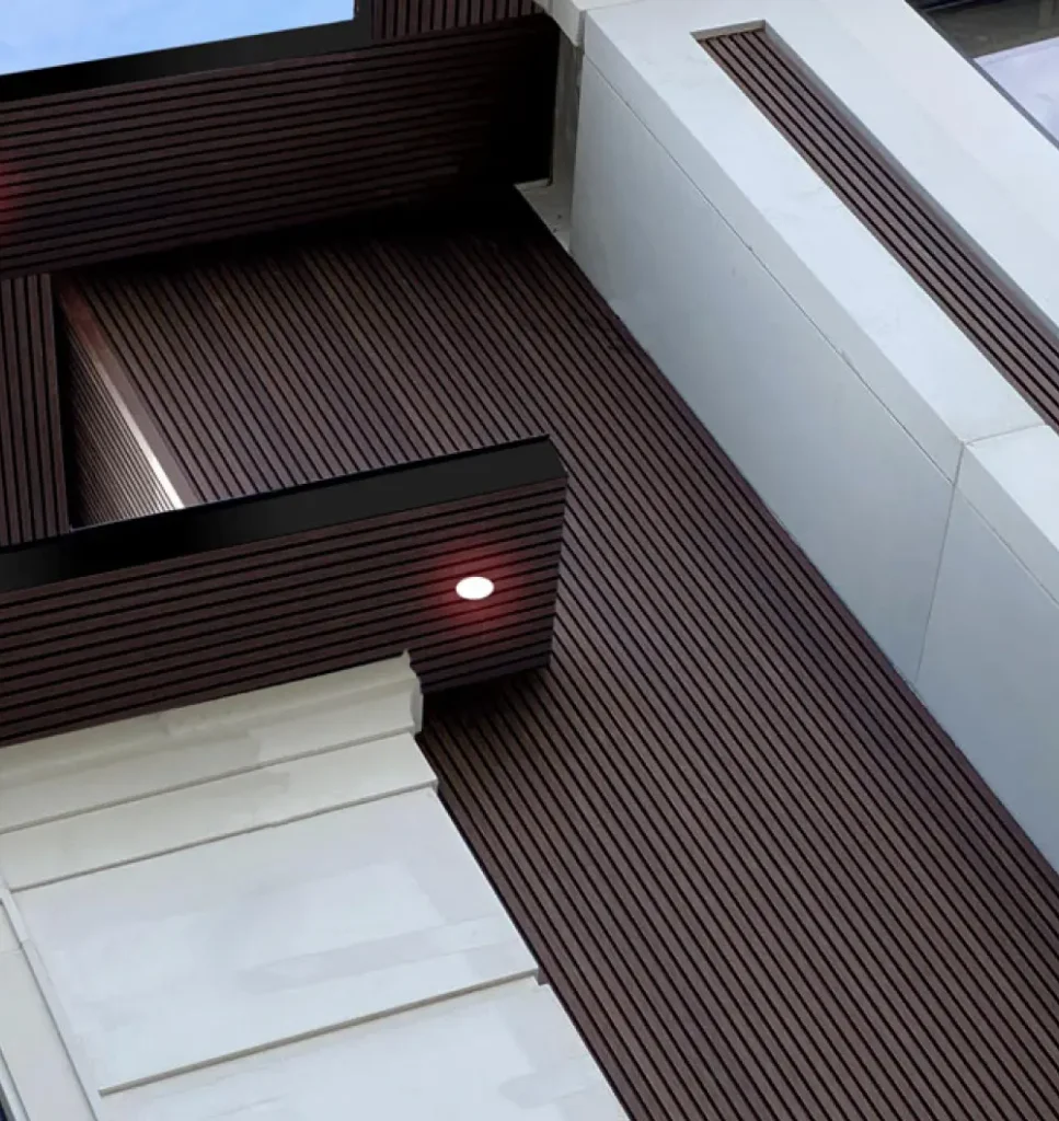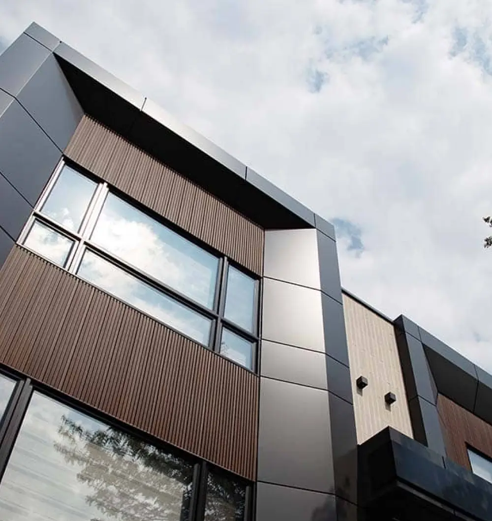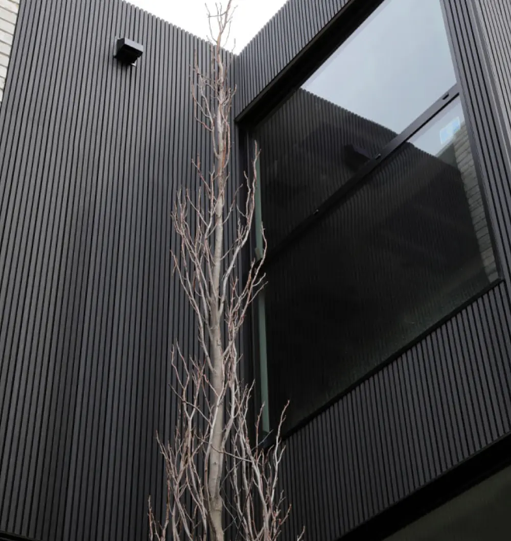Unlike natural wood, NORTwood resists weathering, fading, and warping, making it ideal for commercial and residential façades that demand both beauty and durability.